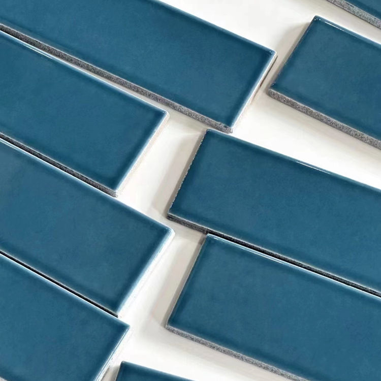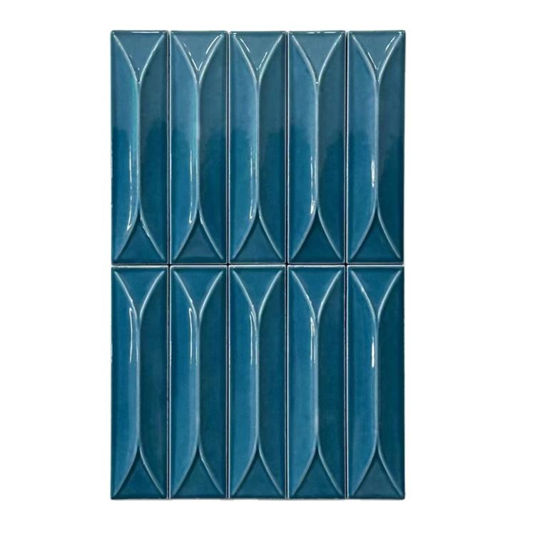 Piastrelle in Argilla 3D Fatte a Mano per Decorazione Bagno e Cucina, Piastrelle Rettangolari Blu Lucide