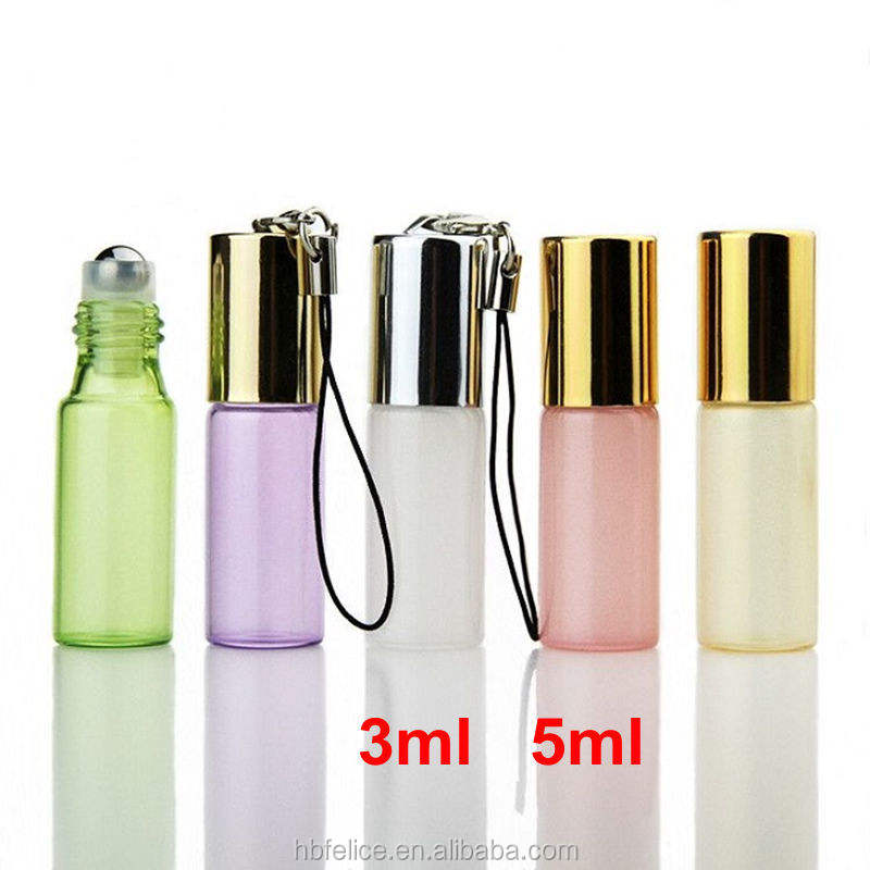 3ml 5ml bottiglie rullo di vetro con rullo di metallo per la sfera di olio essenziale di fiale e ciondolo di perla appeso barattolo di vetro Premium bottiglie