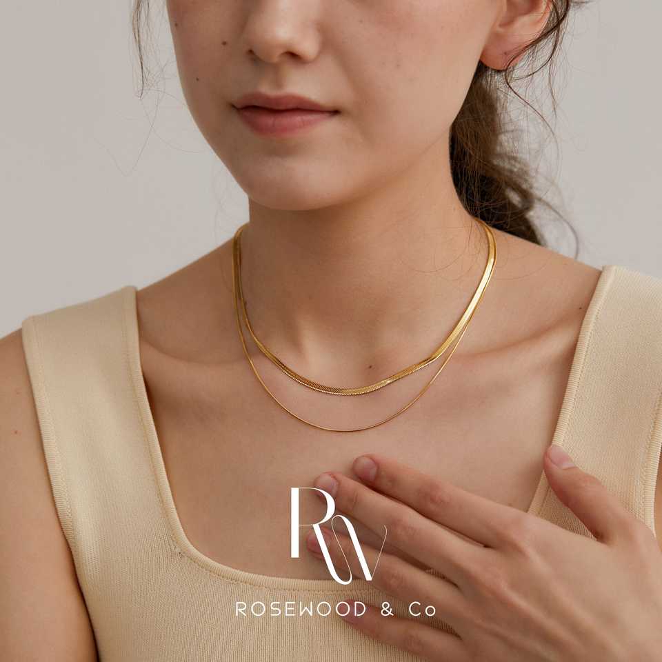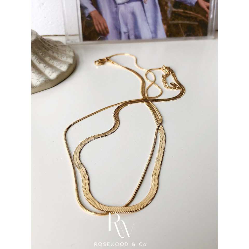 Collana da donna a doppio strato con catena a spina di pesce da 3 mm, placcata oro, non si ossida, impermeabile, impilabile, alla moda