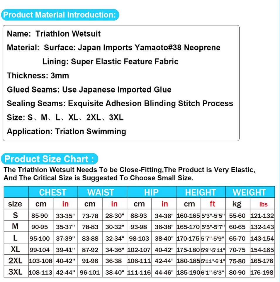 3mm Top Quality Yamamoto Neoprene Wetsuit,Triathlon Wetsuit for Men and Women Universal