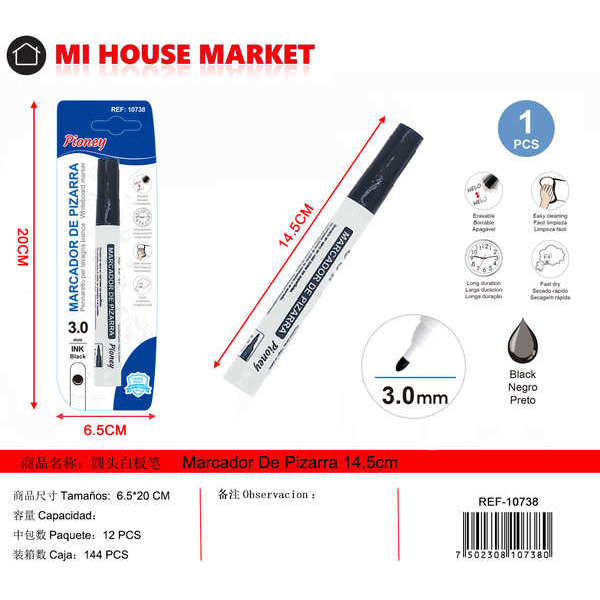3mm Whiteboard Marker with Eraser Black Ink Color