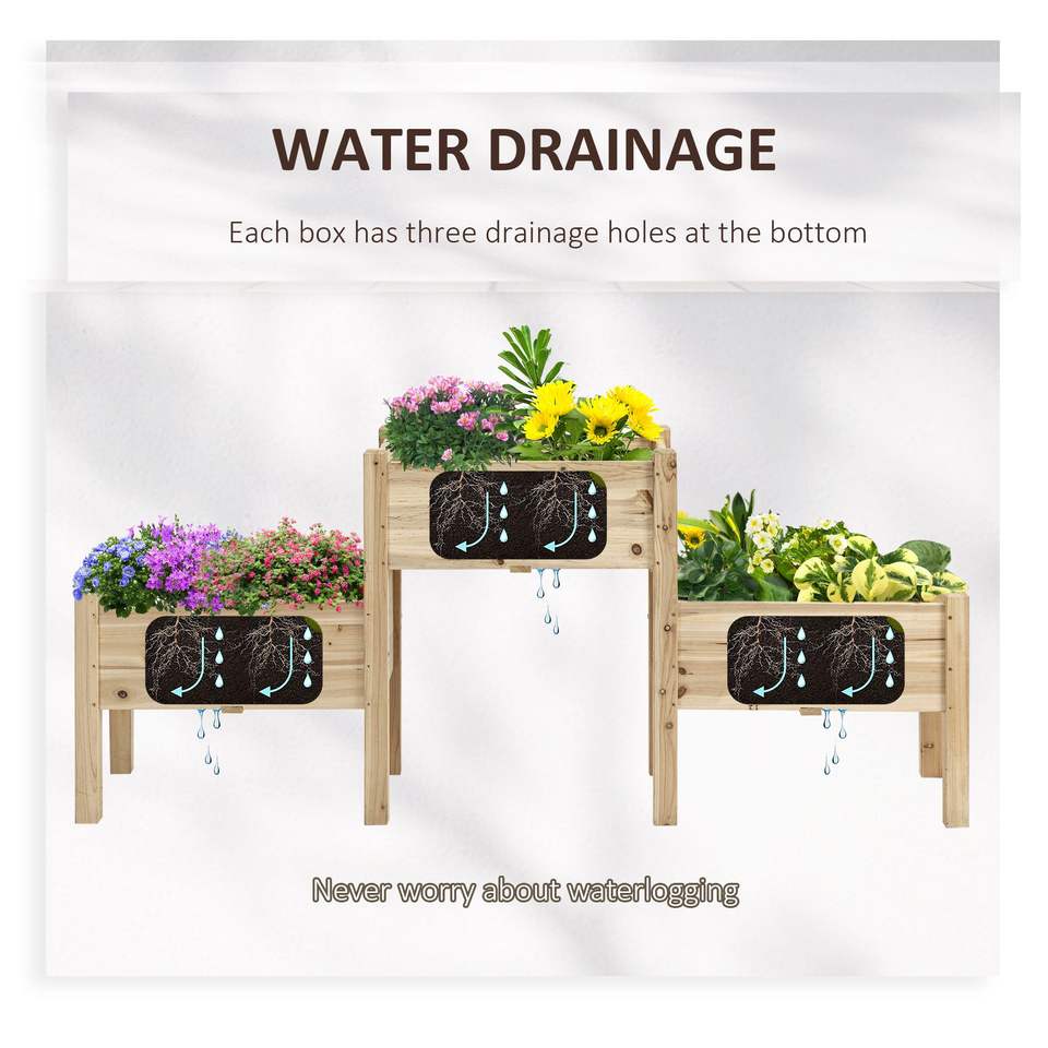 3pc Elevated Wooden Garden Box Set Two-Tiered Design With Natural Drainage Holes for Plant Stand