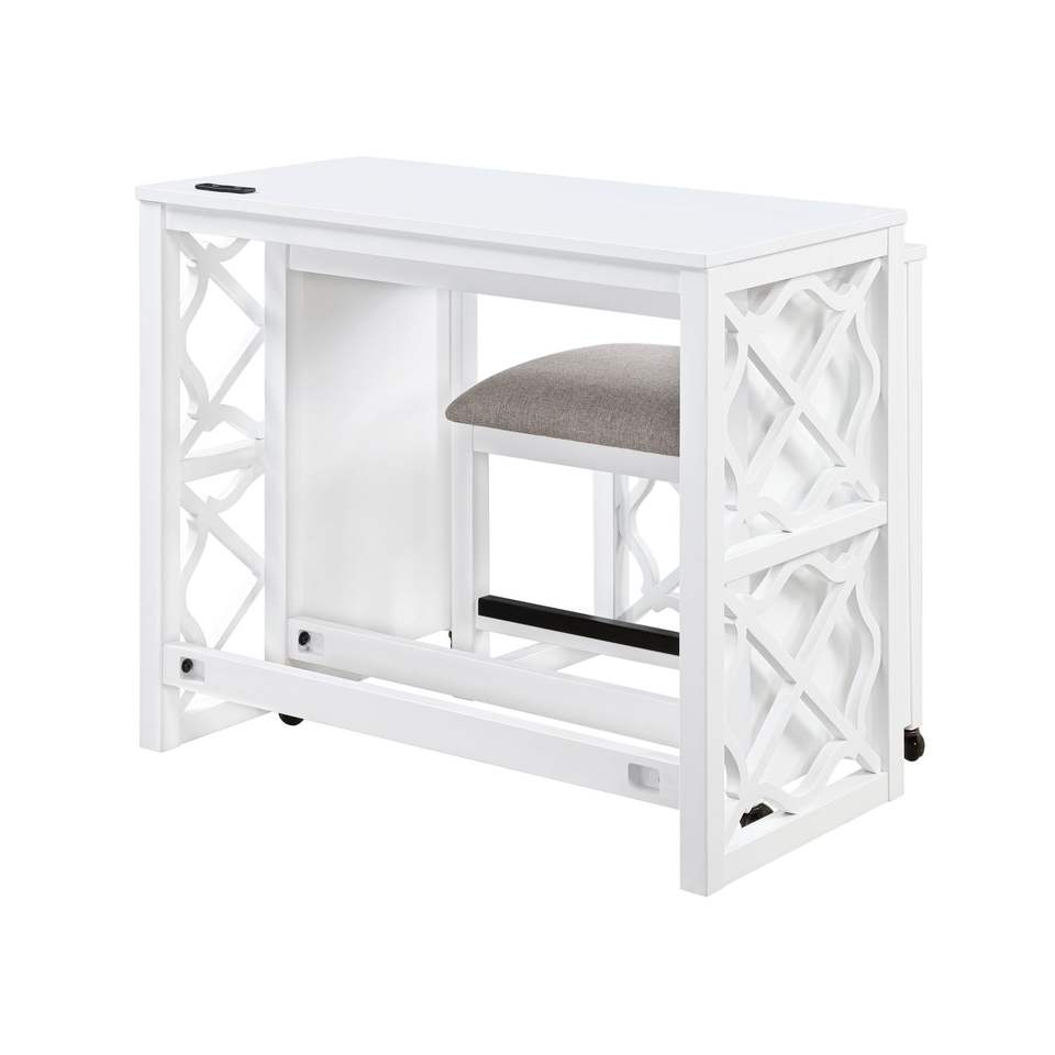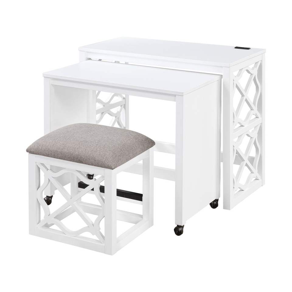 Set da scrivania con finitura bianca da 3 pezzi con ruote 2 porte di ricarica per mobili da ufficio e Set di sgabelli