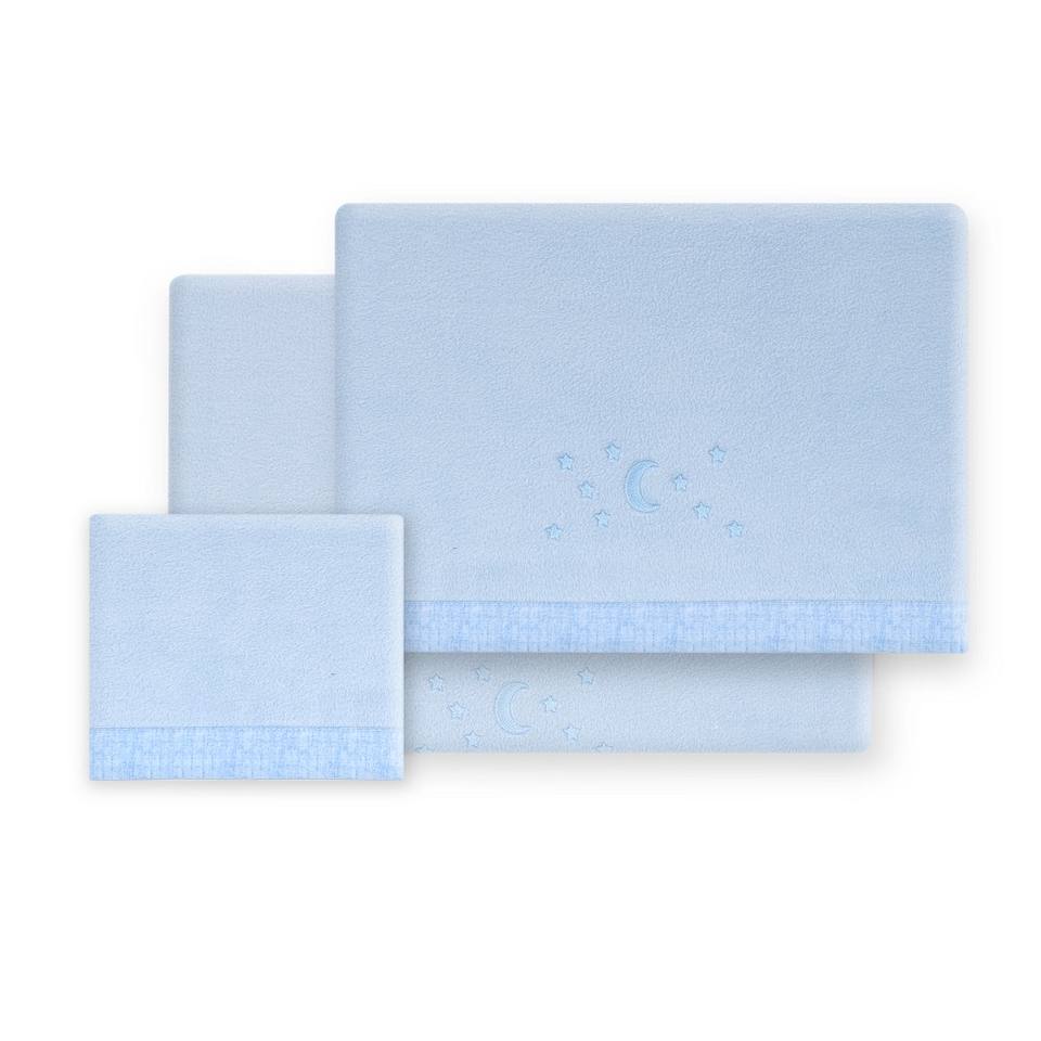 Set di 3 Pezzi per Culla in Pile Polare Corallo con Tecnica di Tessitura - Modello Luna Estrellas