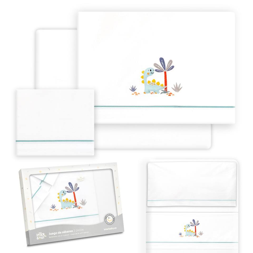 3pcs Dinosauro-Palmera Character Baby Sheets 100% Cotton Bedding for Crib/Cot Woven Technique