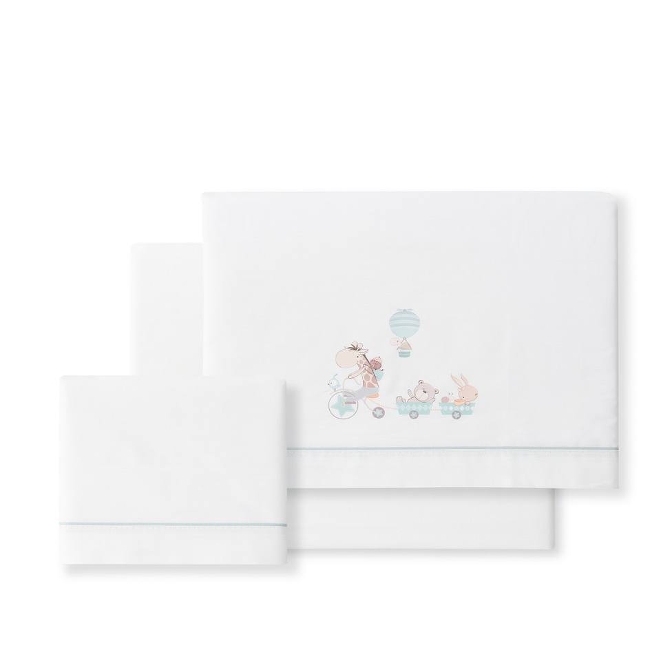 Set di 3 Pezzi Lenzuola per Culla con Motivo Giraffa, 100% Cotone, Tecnica Tessuta, Modello Jirafa