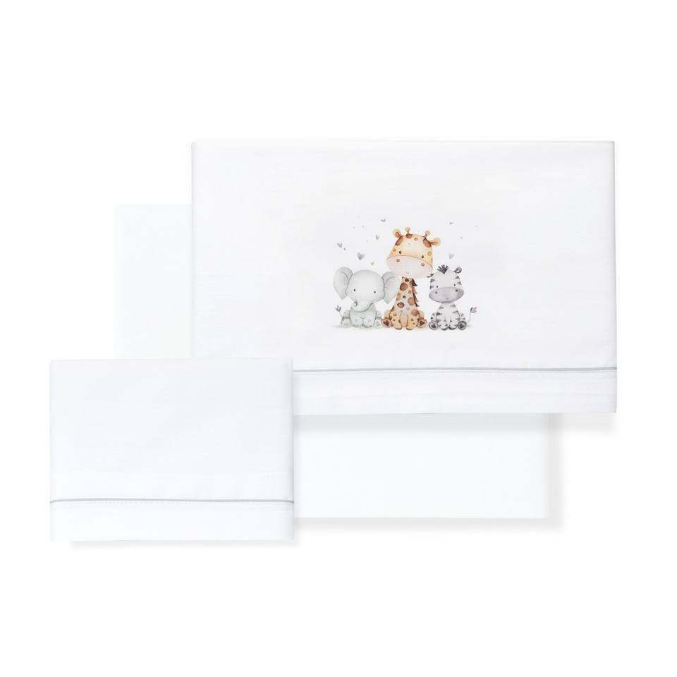 Set di 3 Pezzi per Culla con Motivi di Giraffe ed Elefanti, 100% Cotone con Tecnica di Tessitura e Disegni di Personaggi