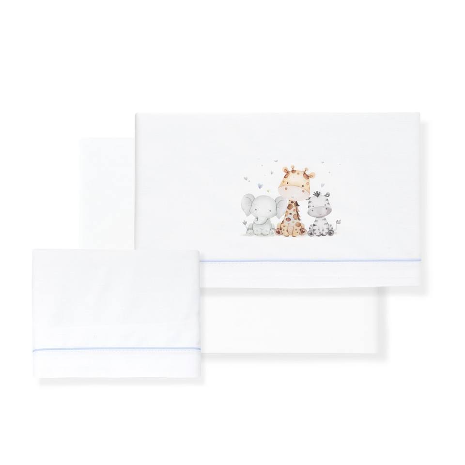 Set di 3 Pezzi per Culla con Motivi di Giraffe ed Elefanti, 100% Cotone con Tecnica di Tessitura e Disegni di Personaggi