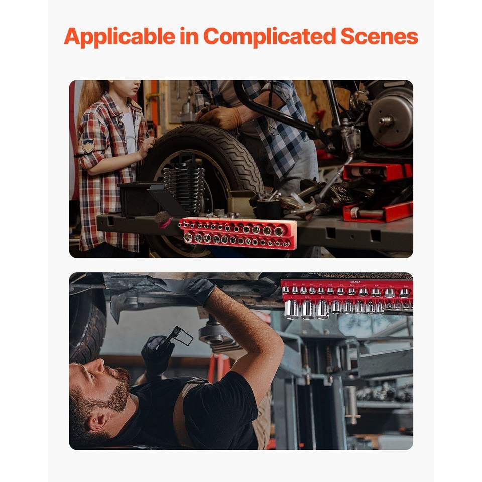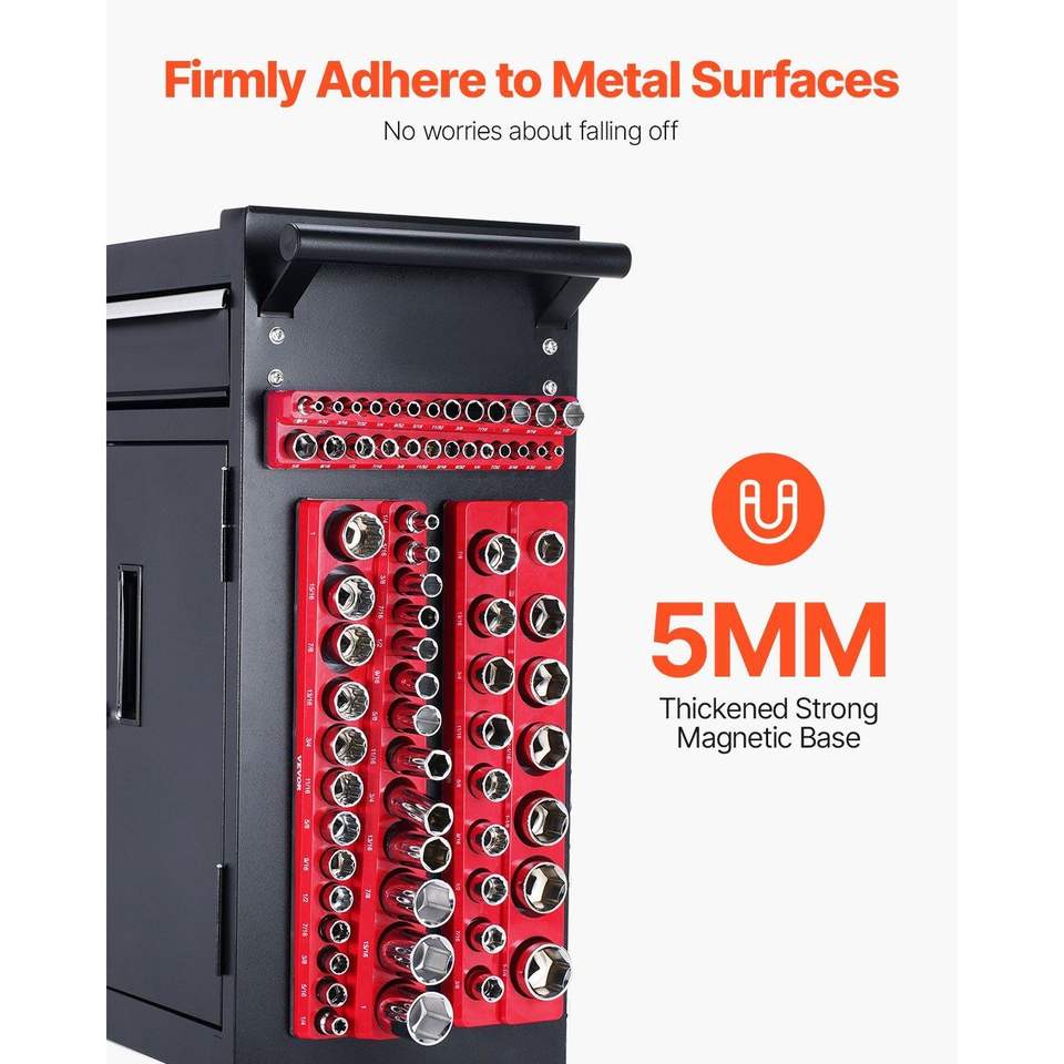 Set di 3 Organizzatori Magnetici per Bussole 1/4 3/8 1/2 SAE con Etichette Trasparenti, Contenitori per Attrezzi con Capacità di 68 Pezzi