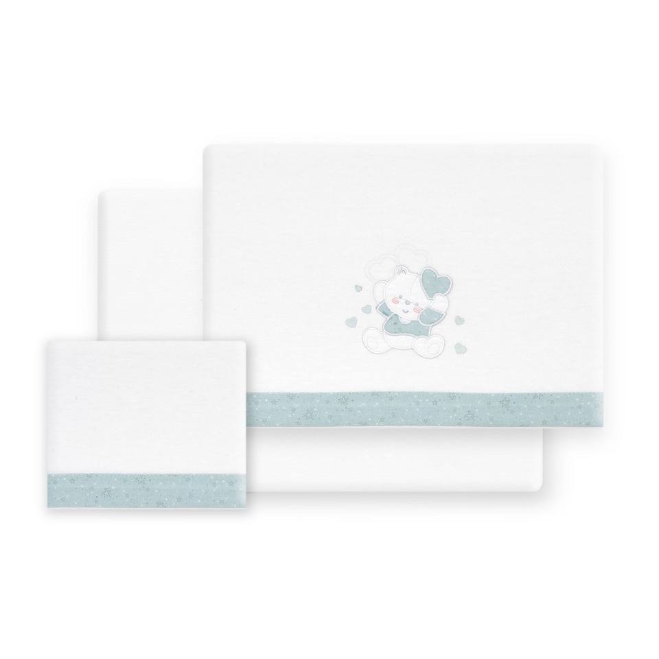 Set di 3 Lenzuola per Culla Oso Corazones in Flanella Tessuta con Motivo Personaggi Modello OSO CORAZONES