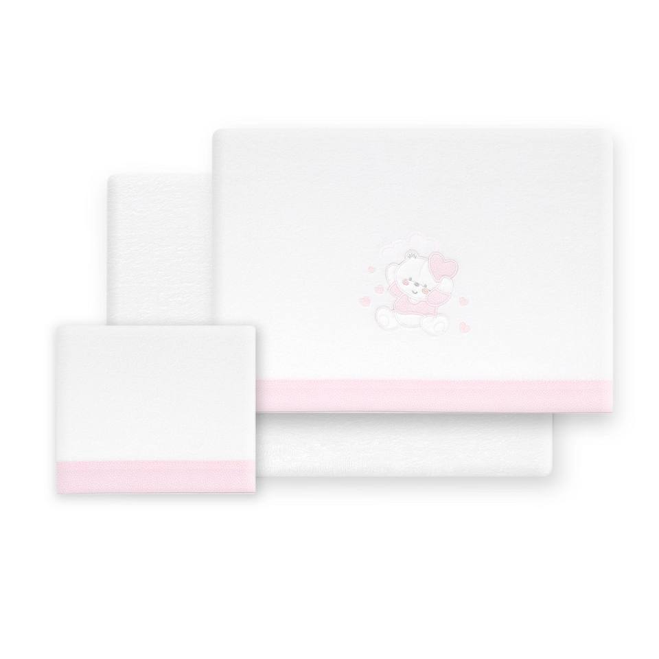 3pcs Oso Corazones Bedding for Pram Coral Polar Fleece Fabric Woven with Character Pattern