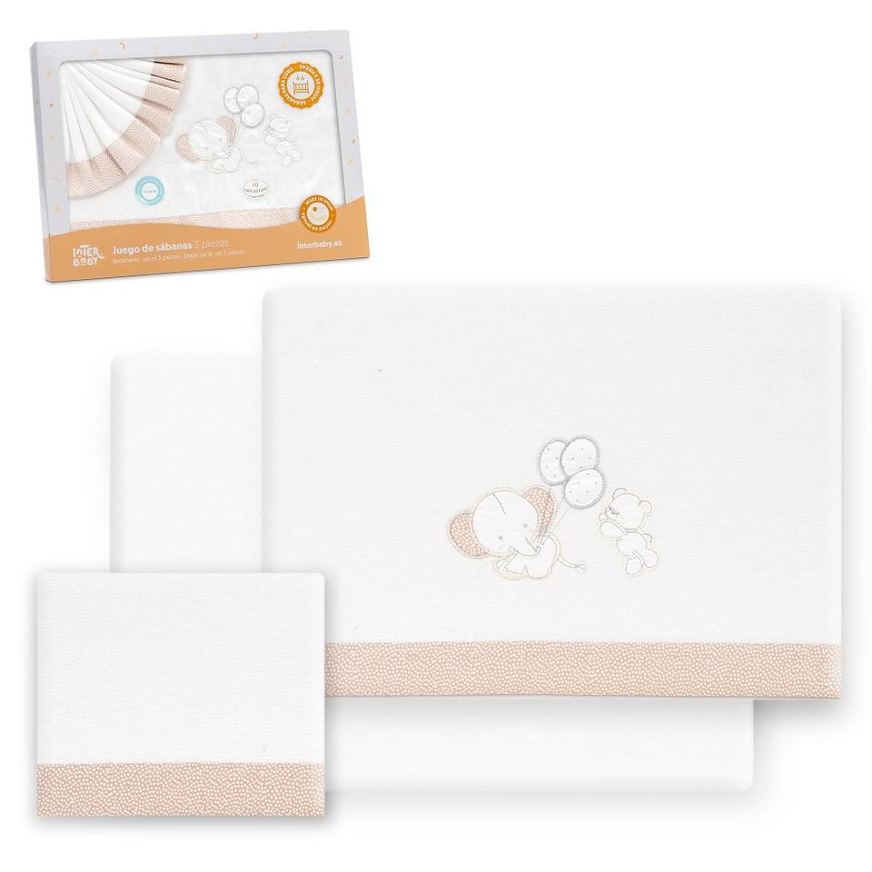 Set di 3 Pezzi Modello Orso-Elefante per Lettino in 100% Cotone Flanellato con Motivi Decorativi per Neonati