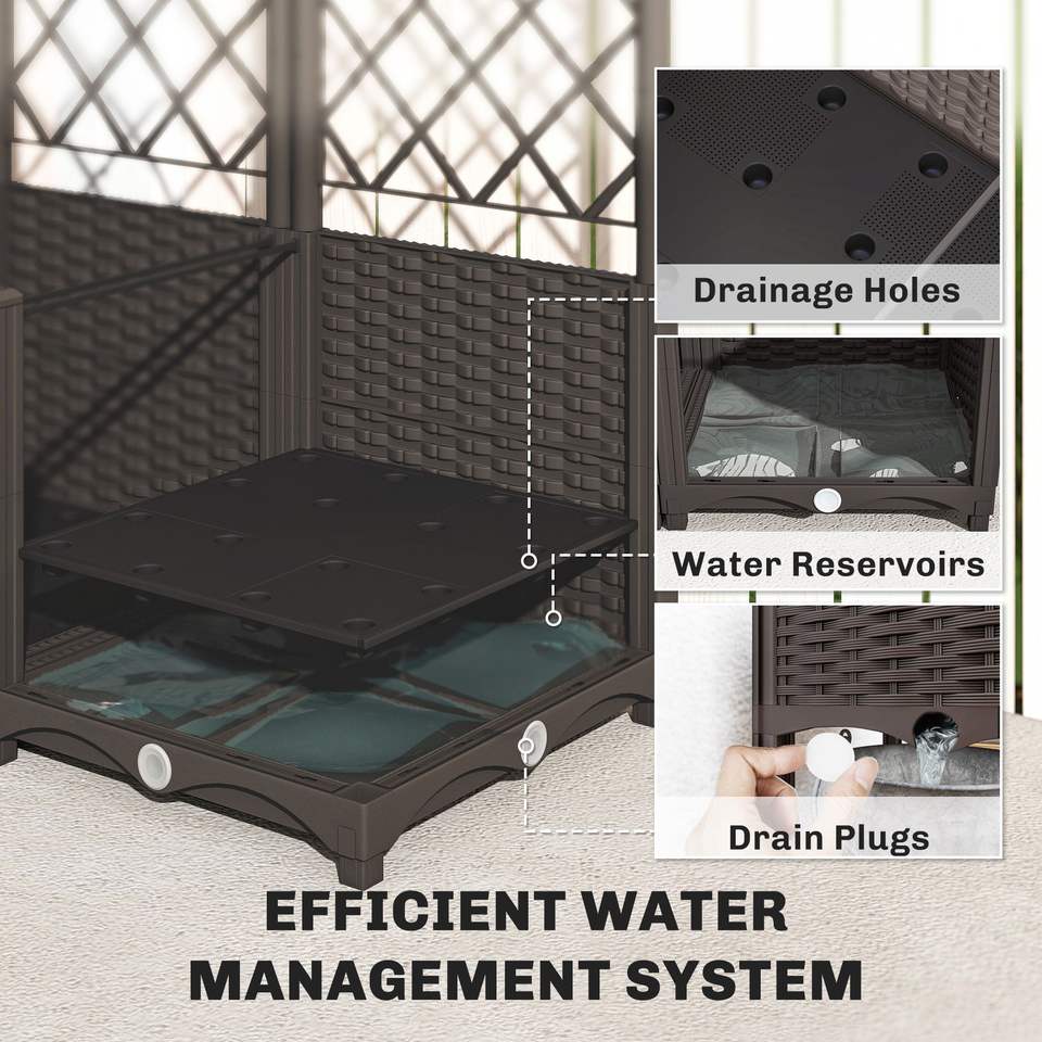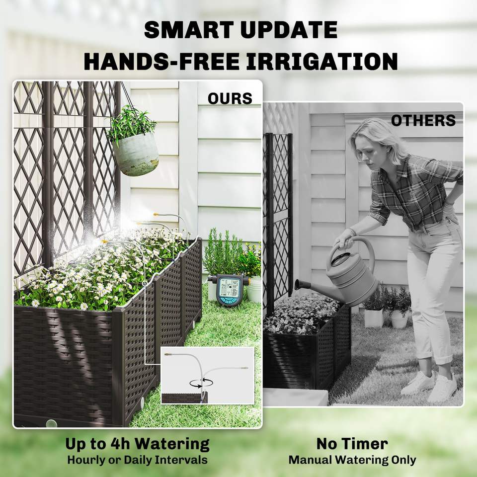 Set di 3 aiuole rialzate in plastica con irrigazione automatica, traliccio e kit timer per irrigazione automatica, recinzioni, tralicci e cancelli