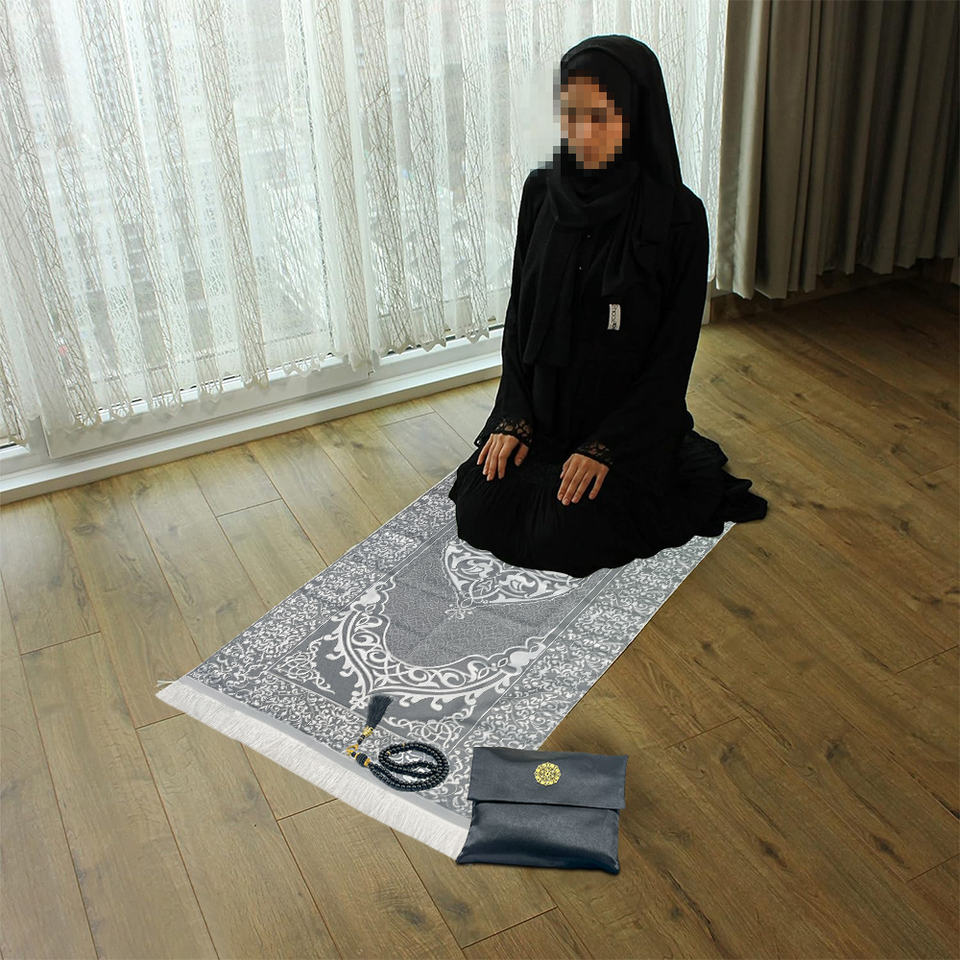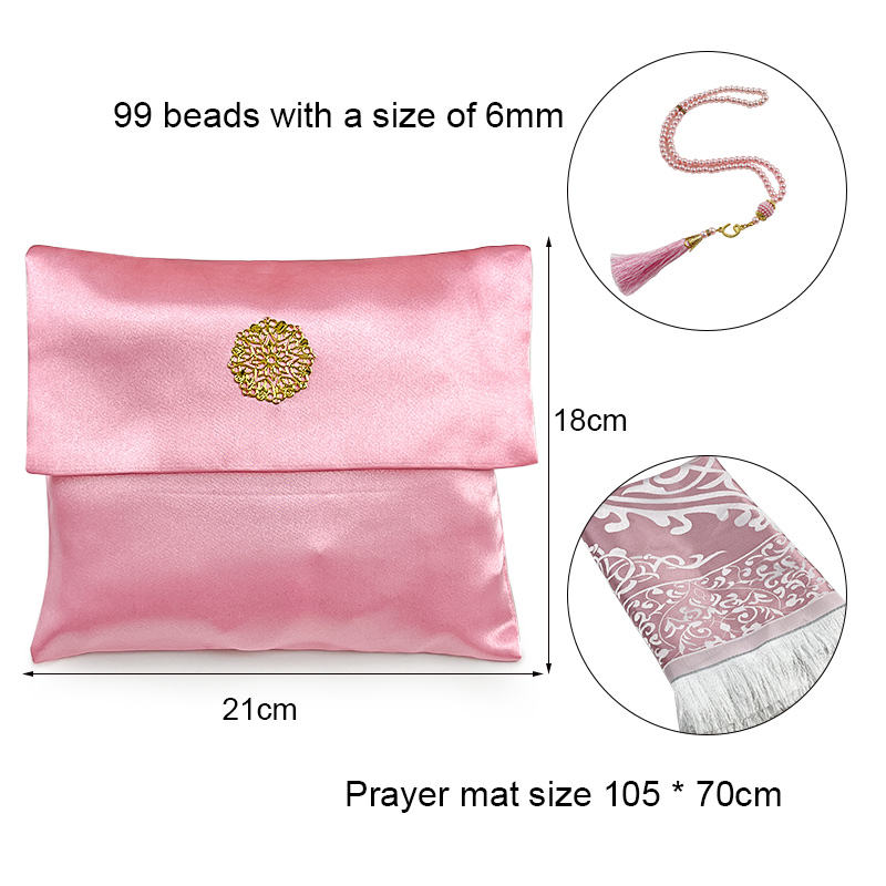 Set da 3 Pezzi Tappeto da Preghiera Musulmano con Elegante Custodia, Tasbih da Preghiera con 99 Perle e Tappetino Portatile per Donne, Regali per Eid e Matrimoni