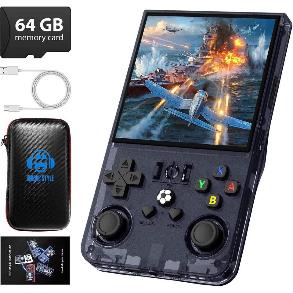 Console di Gioco Portatile Retrò da 4.0 Pollici, Schermo IPS 720x720, 64GB di Memoria, 18.000+ Giochi Classici Integrati, Batteria Incorporata, Grigio, Gaming Retrò