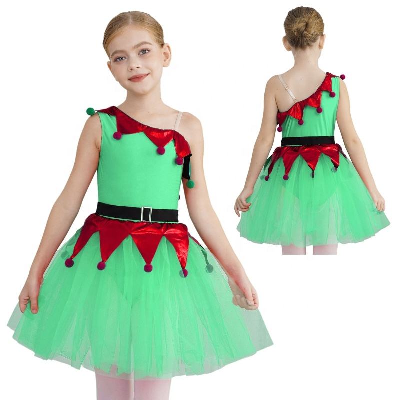 4-16 Kids Girls Christmas Dance Ballet Tutu Skirts Dress Ballerina Costume Sleeveless Leotard Jumpsuit With Belt Sets