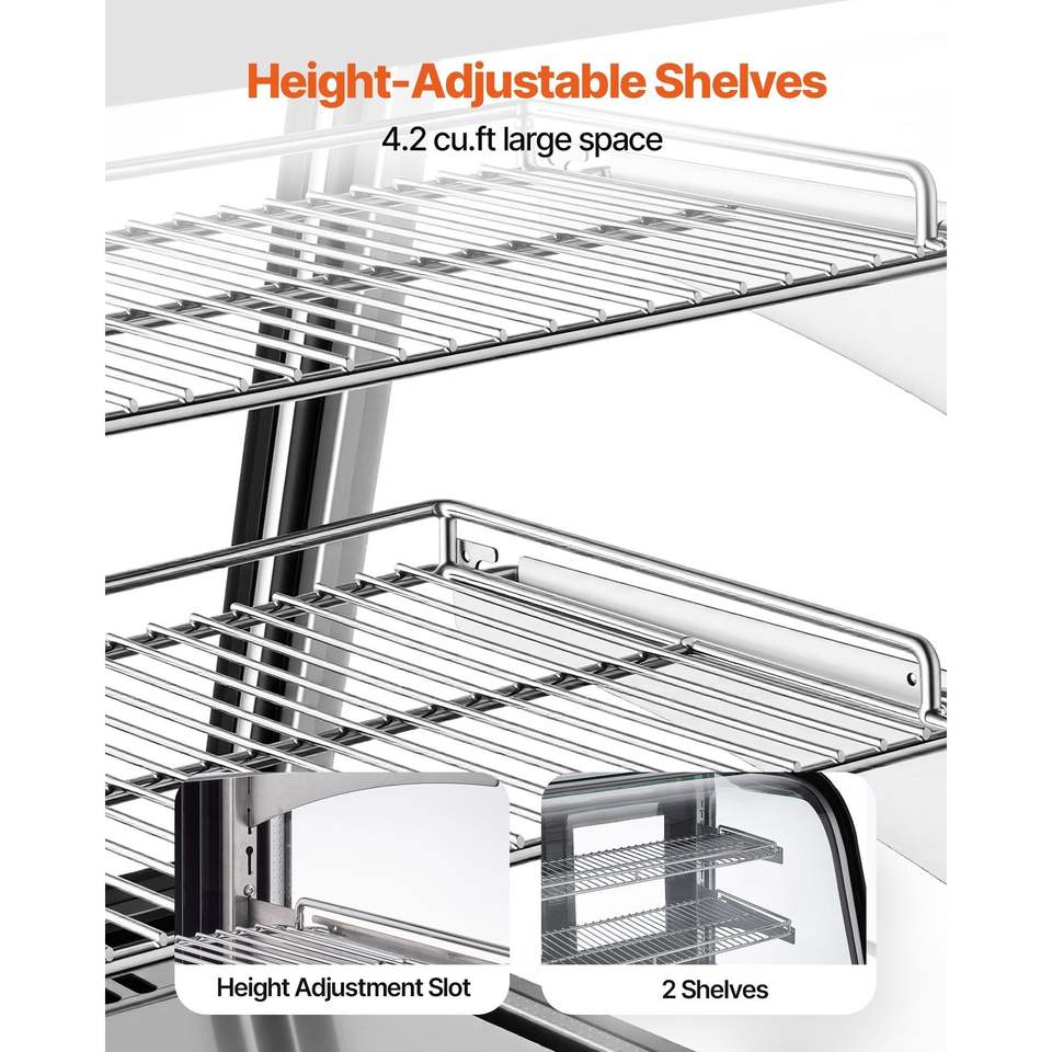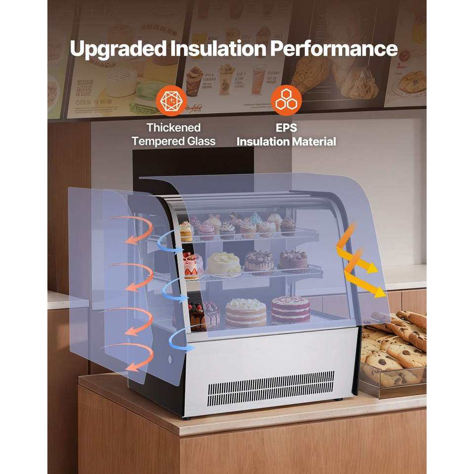 Vetrina Refrigerata Commerciale a 2 Ripiani da 4,2 Cu.Ft./105L per Pasticceria con Illuminazione LED