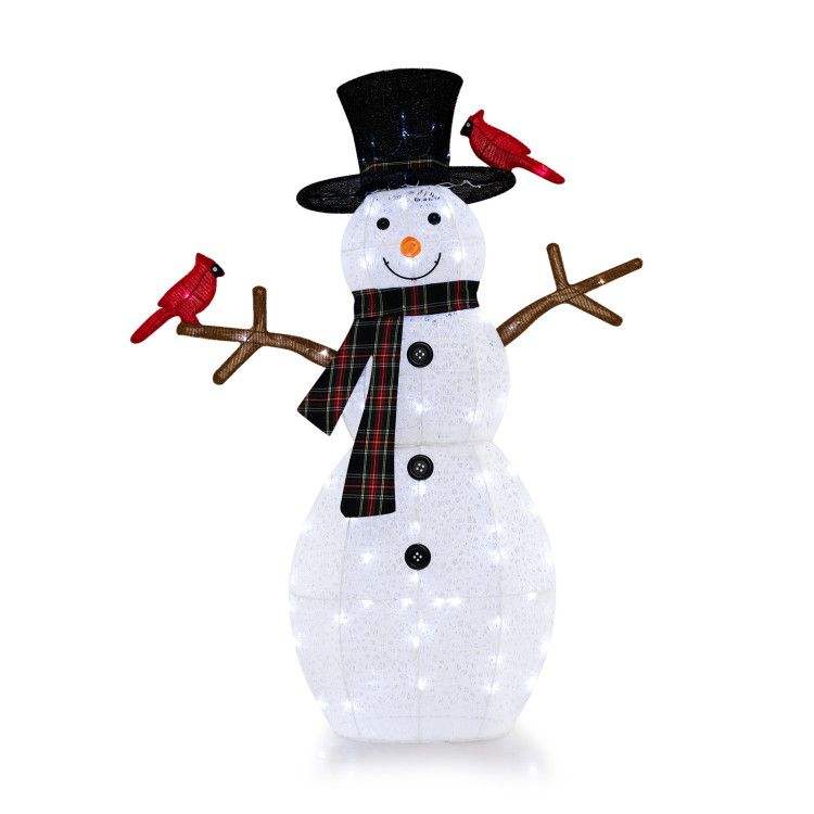 Decorazione Natalizia con Pupazzo di Neve Illuminato di 1,2 Metri e Uccelli Rossi, Ornamento Festivo per le Feste