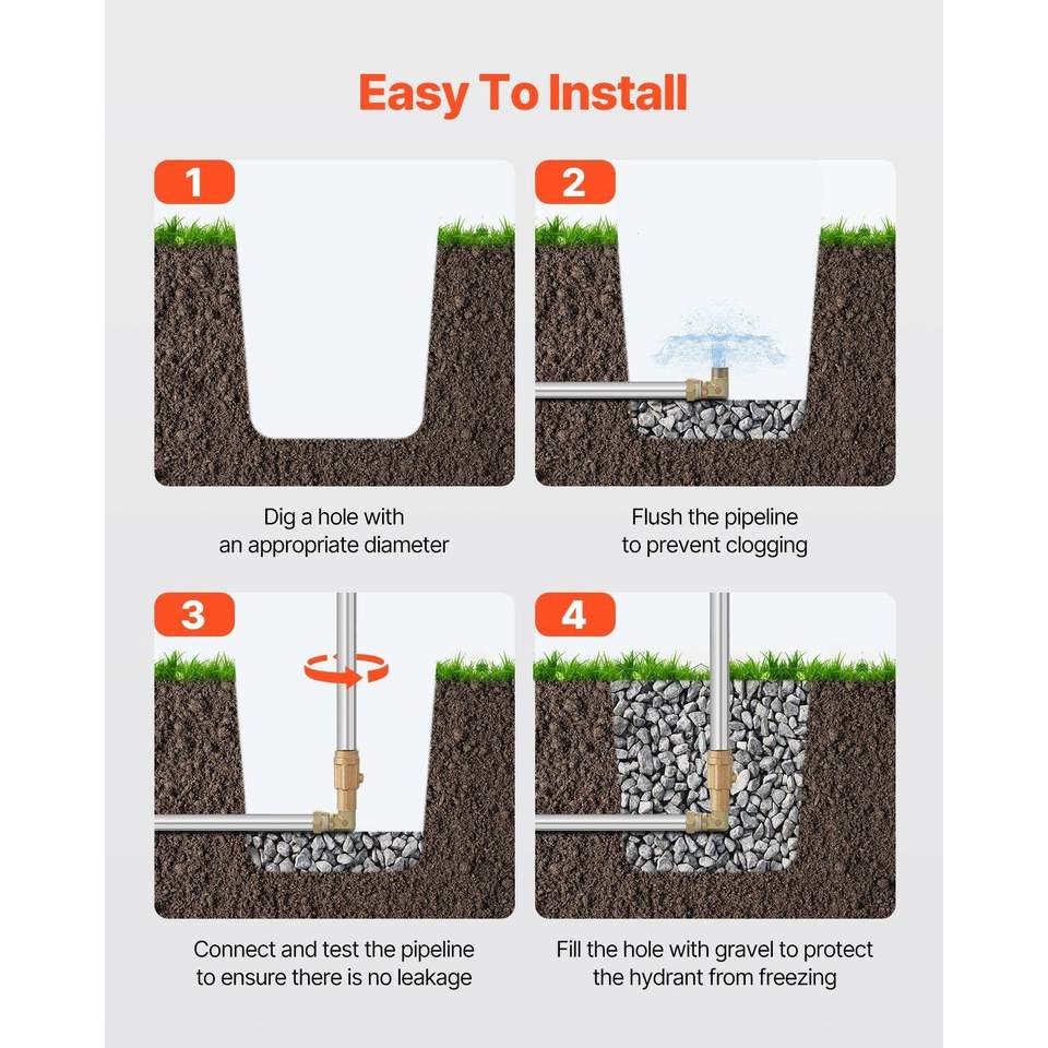 Rubinetto Esterno Antigelo da 4,25 FT, Idrante da Giardino Resistente al Gelo, Profondità di Interramento 24'', Connettori per Tubi NPT da 3/4''