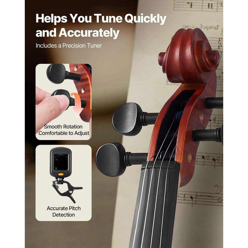 Set Violino 4/4 per Adulti con Custodia Rigida, Resina, Arco, Supporto per Spalla - Extra per Principianti e Studenti