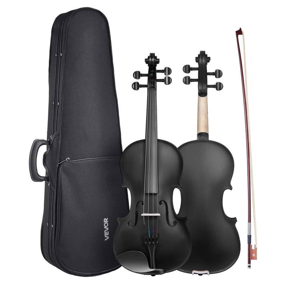 Black 4/4 Full Size Adult Violin Set with Hard Case Rosin Bow Shoulder Rest Tuner for Beginners Students