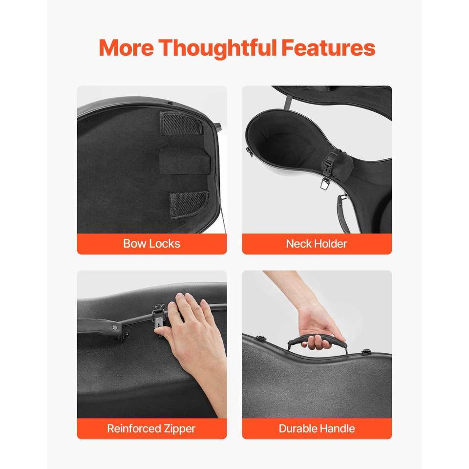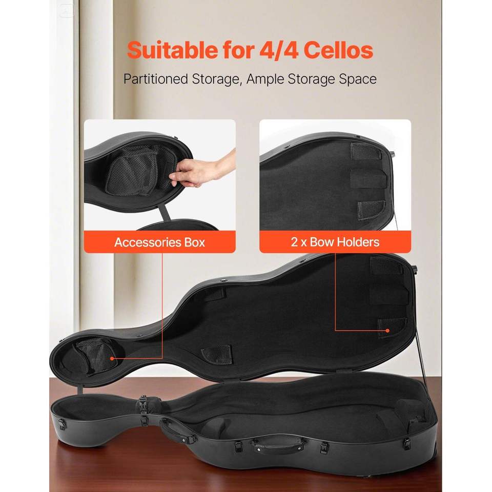 Custodia per Violoncello 4/4 in Fibra di Carbonio Composita, Leggera e Portatile, con Fodera in Peluche e Doppia Tracolla per Musicisti