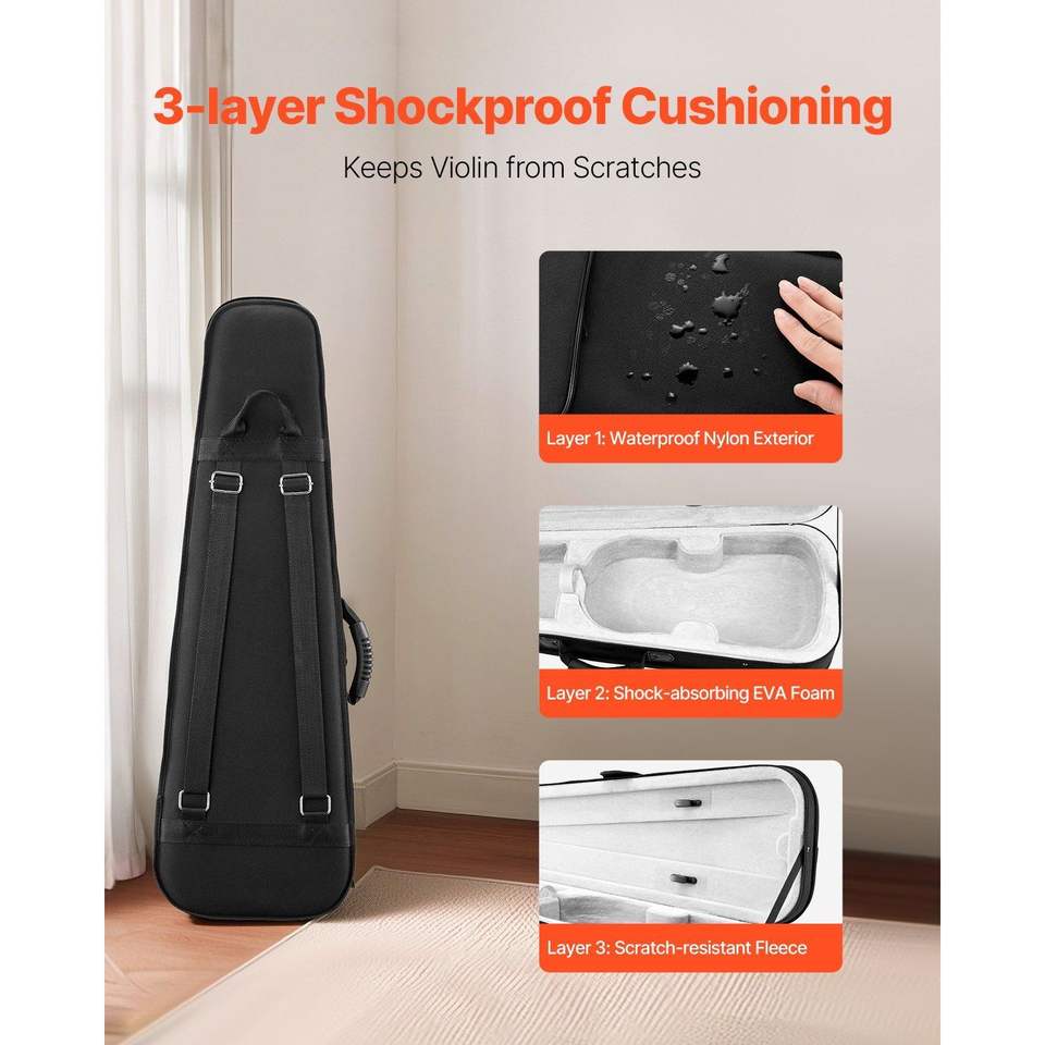 Custodia per violino 4/4 in nylon, impermeabile, leggera, portatile, da viaggio, con fodera in peluche, doppia protezione per strumento musicale