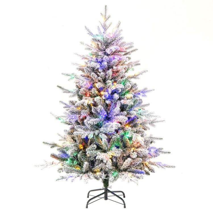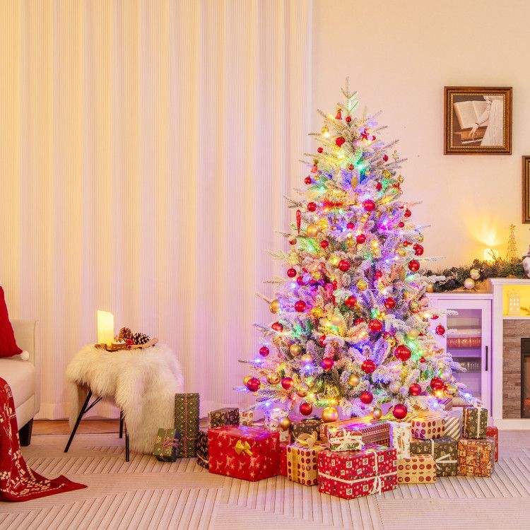 Albero di Natale floccato da 4,5/6/7 piedi con 8 modalità di illuminazione e luci LED multicolore