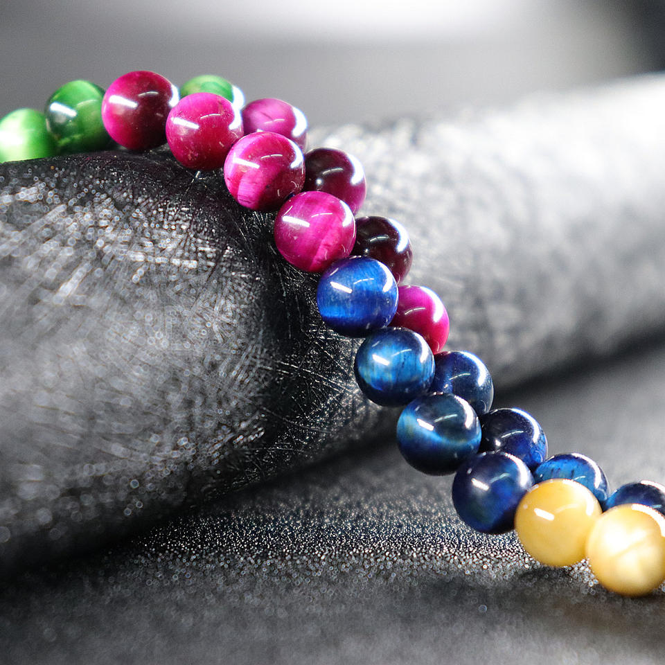 Perline Rotonde Sciolte in Occhio di Tigre Multicolore Blu, Viola e Ruse da 4/6/8/10/12mm per Creazione di Gioielli, Collane e Bracciali