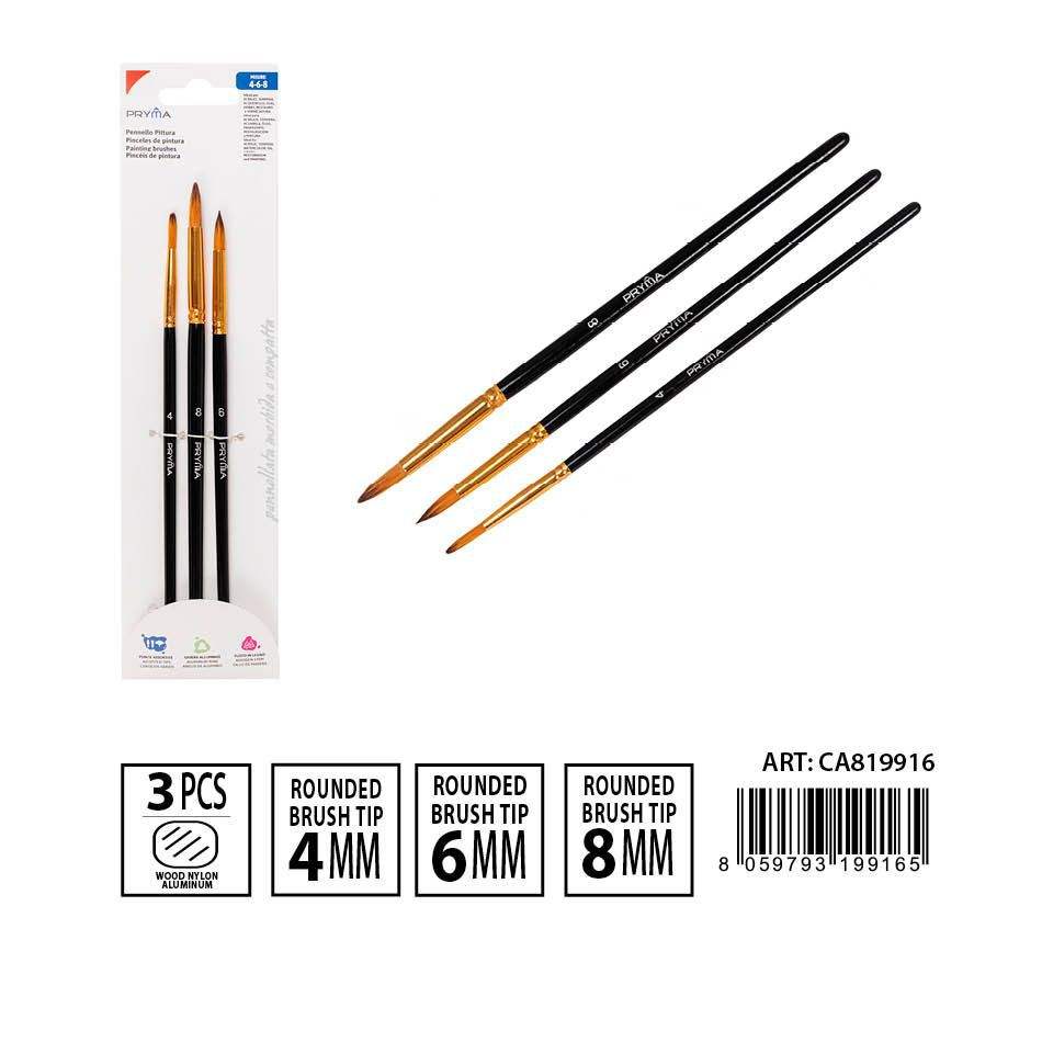 4# 6# 8# Nylon Paintbrush Set Flat White Wood Handle for Watercolor Painting 3PCS Art Supplies