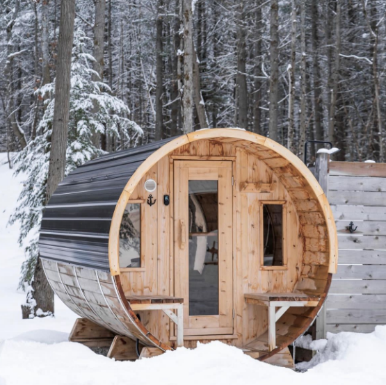 Sauna a Botti da Esterno per 4-6 Persone con Finestre Panoramiche e Vasche Spa a Vapore