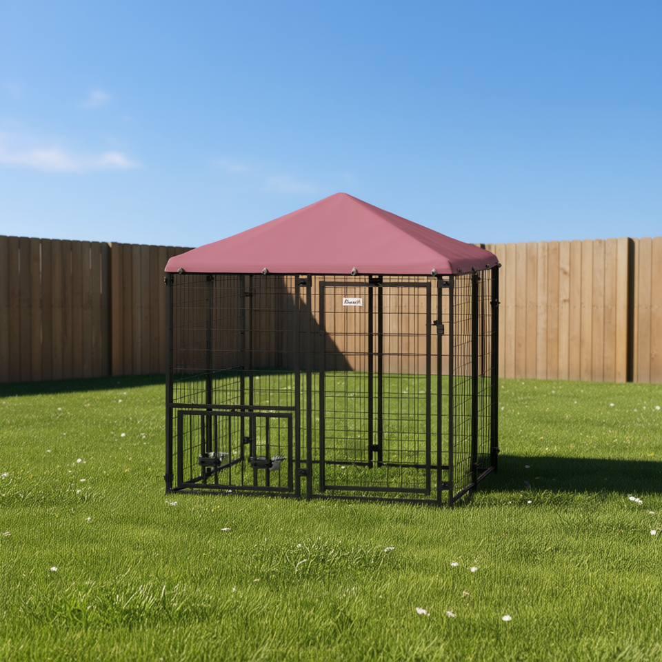 Outdoor Dog Kennel 4.6' X 4.6' X 5' Welded Wire Waterproof Cover Pet House Large Breed