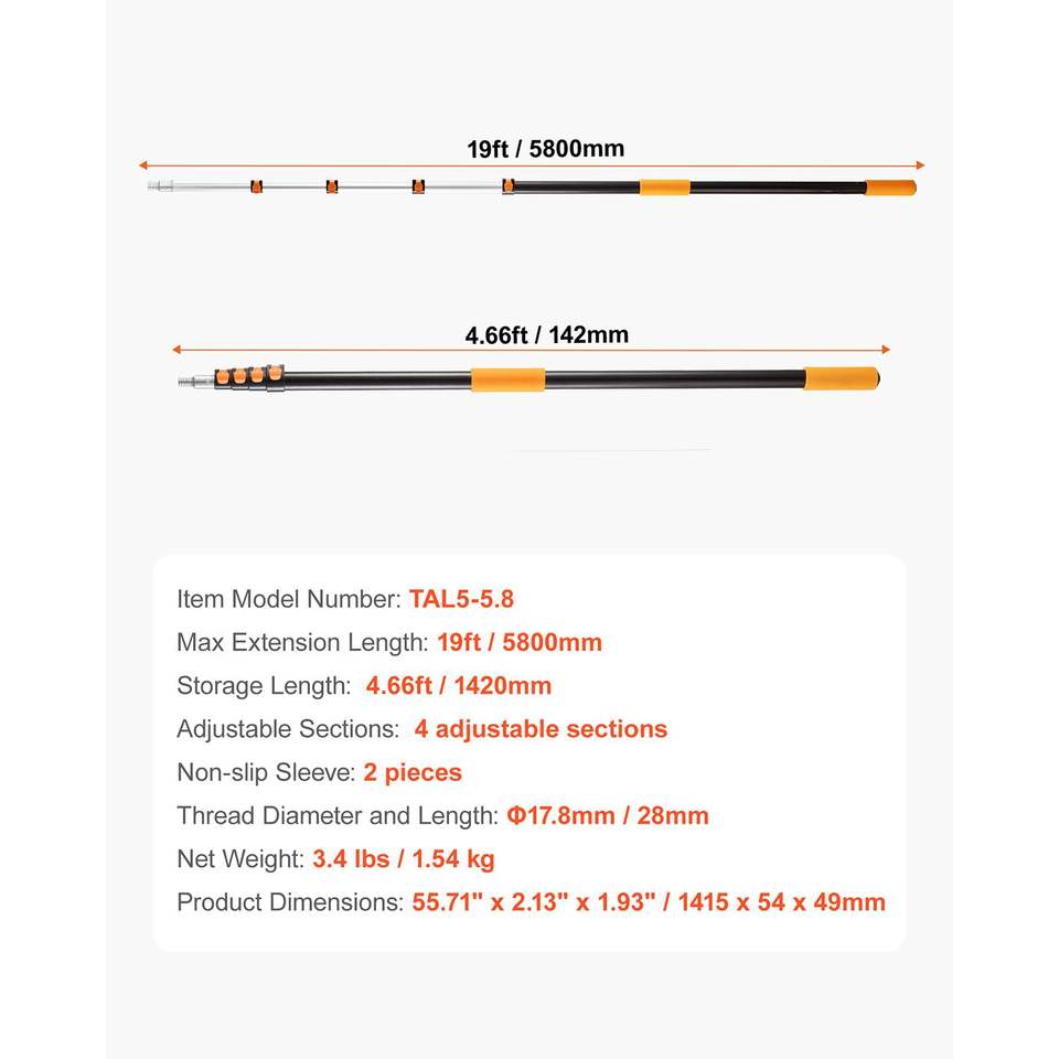 Asta Telescopica 4.66-19 FT in Lega di Alluminio Robusta, Strumento Multiuso per Pulizia con Sistema Flip-Lock