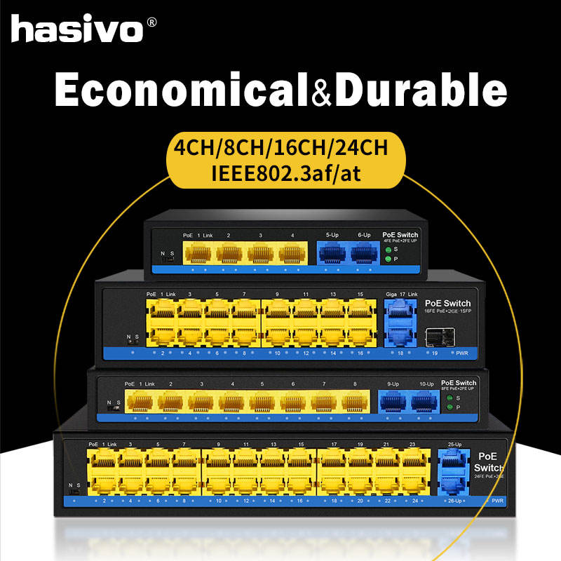 4 8 16 24 porte eothernet con porta standardizzata IEEE 802.3 Af/a 2 Gigabit Uplink 1 SFP 250m interruttore di rete