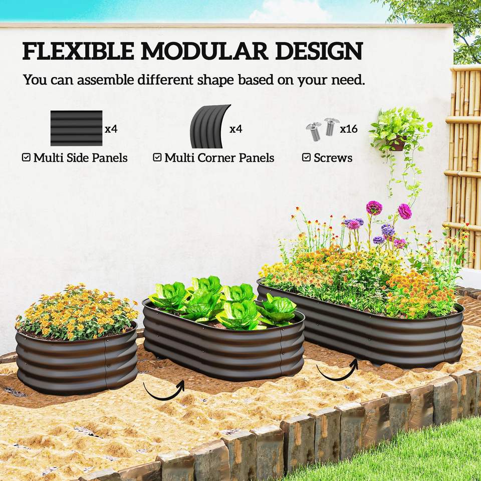 Kit per Aiuola Rialzata in Metallo Zincato Grigio Scuro 4,9 x 2 x 1 con Bordo di Sicurezza per Vasi e Fioriere
