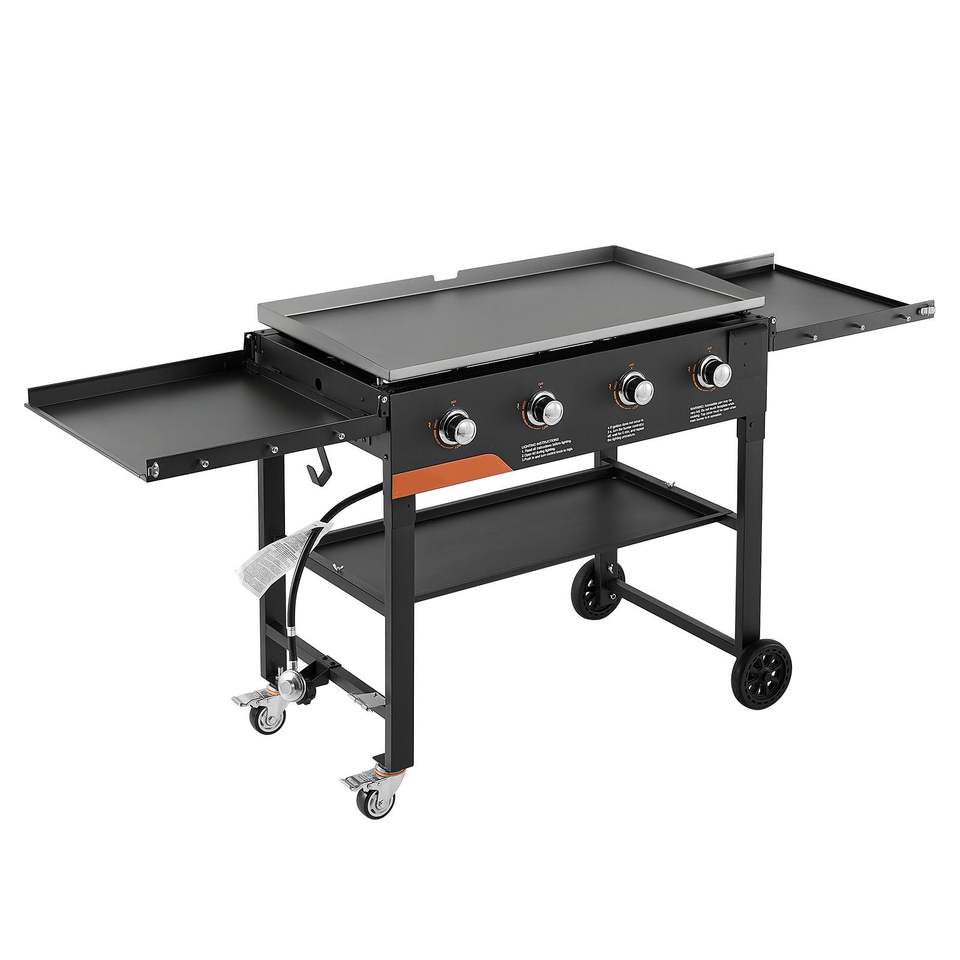 Griglia a Gas a 4 Bruciatori da 36 Pollici con Piastra Piana, Ruote Pieghevoli, 60000 BTU, per Uso Esterno Domestico e Commerciale