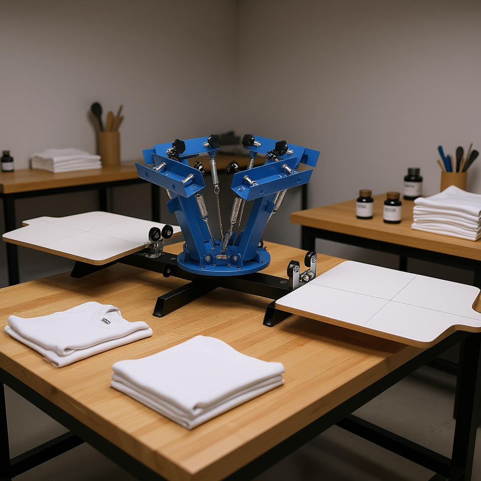Macchina serigrafica a 4 colori e 2 stazioni, 21,2 x 17,7 pollici, rotazione a 360 gradi, doppio strato, per stampa su t-shirt, fai da te