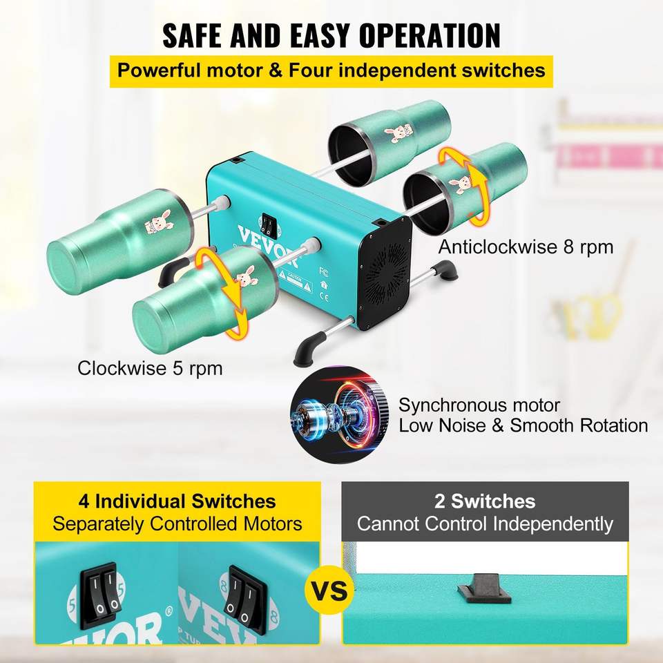 Giratore per 4 tazze a 2 velocità, kit macchina rotante per bicchieri multipli con 4 bracci rimovibili e regolabili, motore silenzioso, per artigianato in alluminio e resina