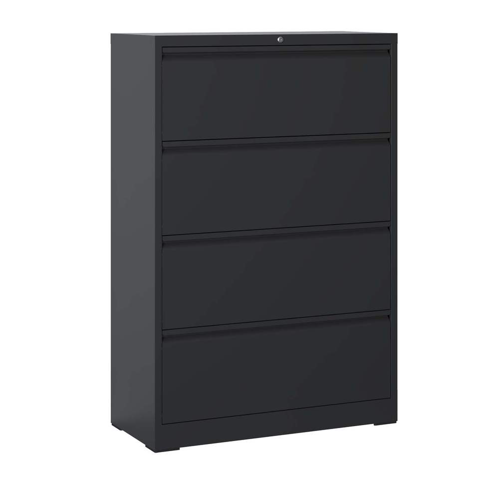Armadietto Portadocumenti in Metallo Nero con 4 Cassetti e Serratura per Casa e Ufficio