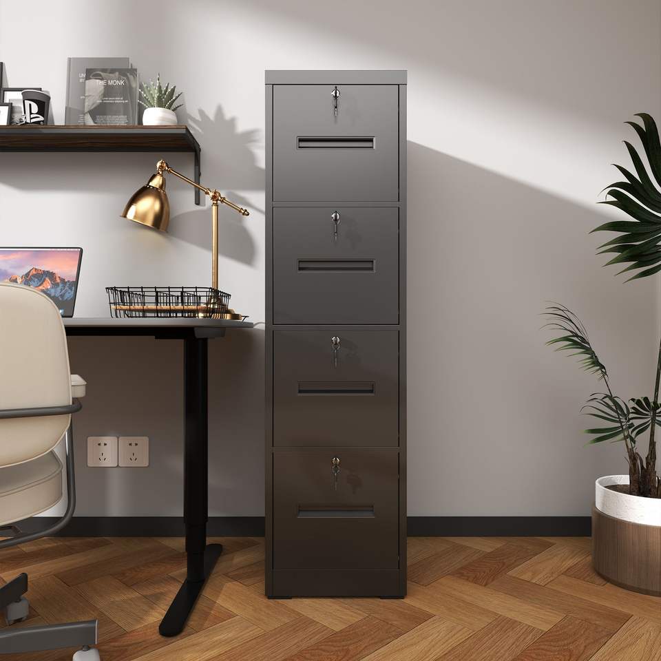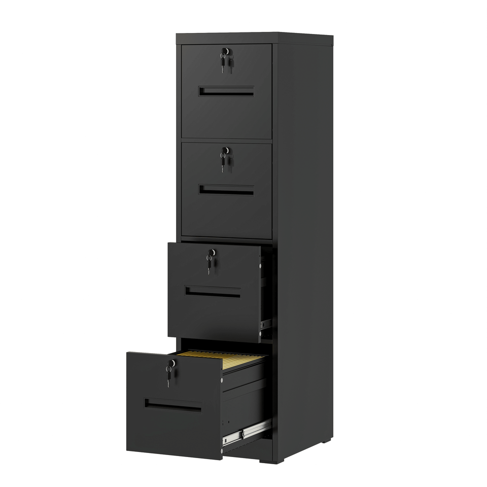 Armadietto Verticale in Metallo Nero a 4 Cassetti per Ufficio Domestico, Serratura Inclusa, Montaggio Richiesto, per Formati Letter/Legal/A4/F4