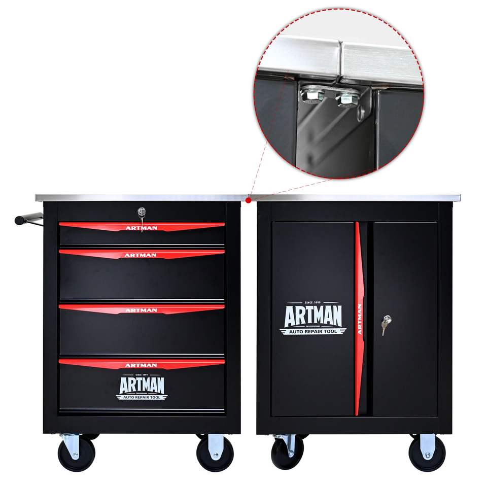 Carrello Portautensili in Metallo a 4 Cassetti con Ruote, Carrello Multifunzionale per Garage, Officina, Magazzino, Laboratorio di Riparazioni