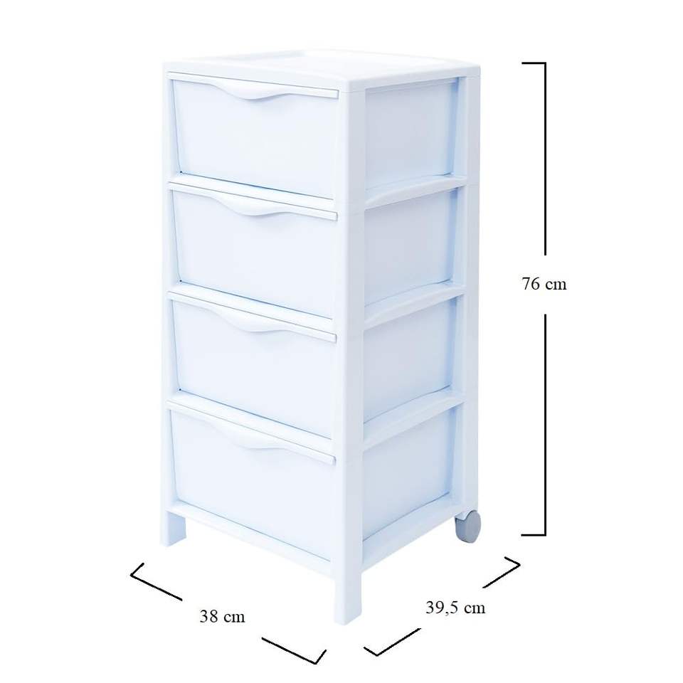 4-Drawer Plastic Storage Chest of Drawers 38x39.5x76 cm White/Dove Grey/Grey-for Bedroom & Bathroom Cabinet