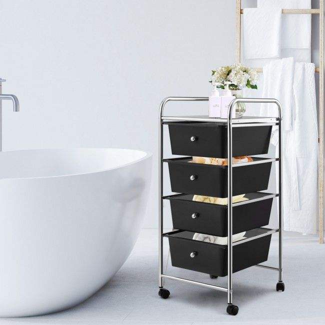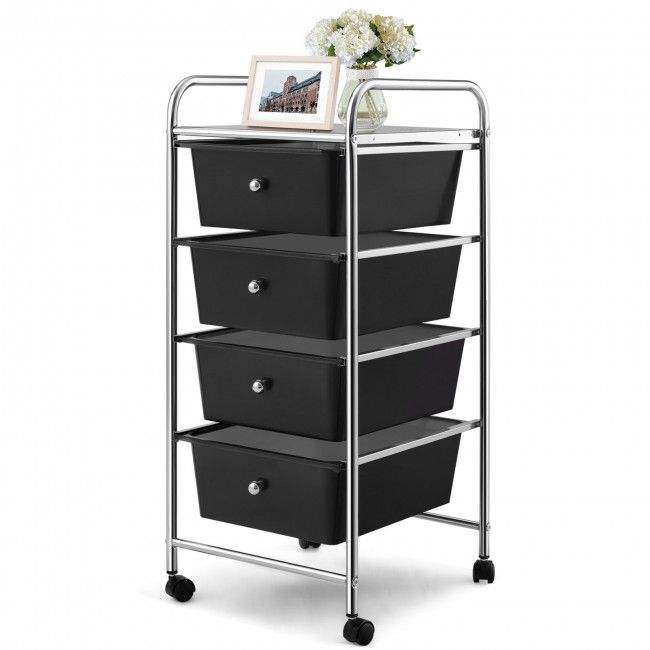 Carrello Portaoggetti a 4 Cassetti con Design Resistente e Contenitori in Plastica