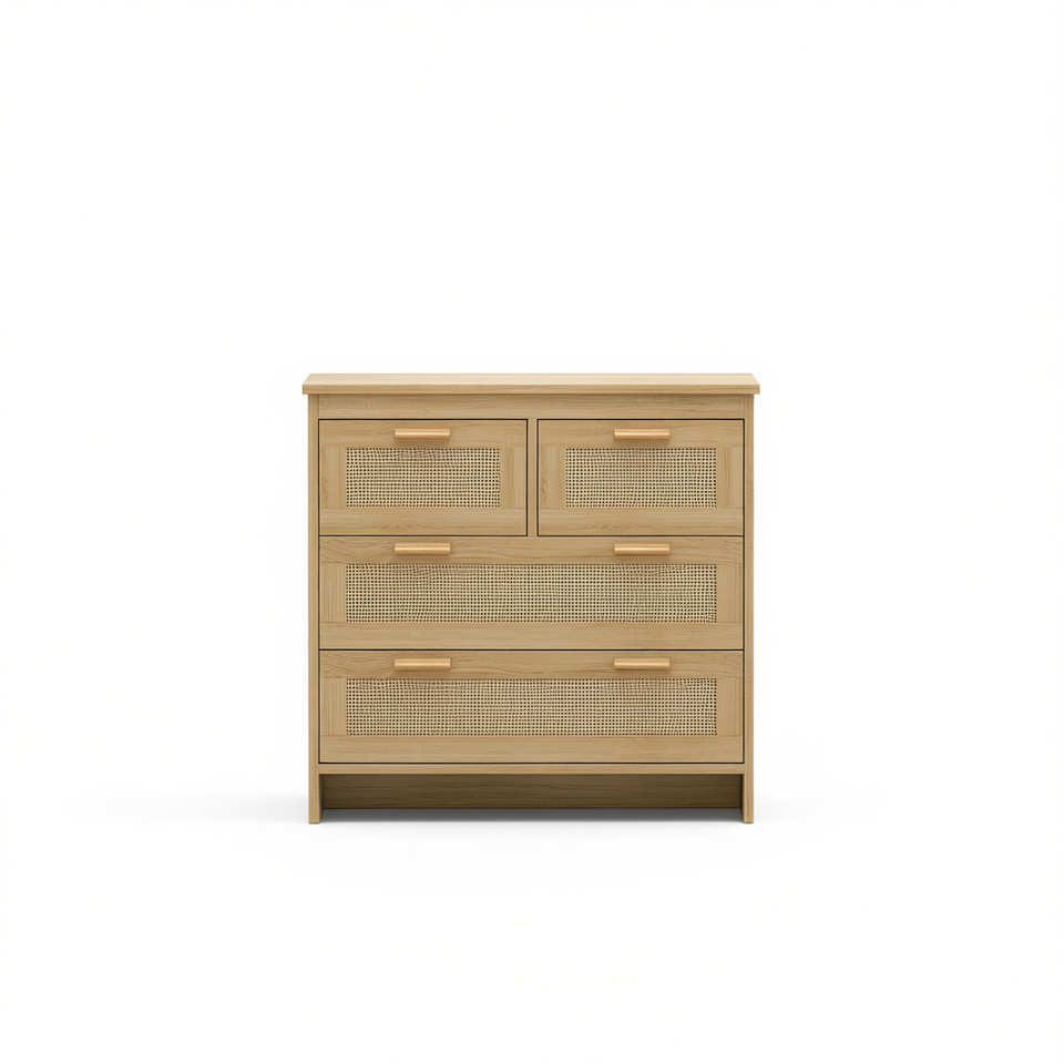 Mobile in Rattan con 4 Cassetti, Finitura Naturale, Facile Montaggio, Arredamento per Camera da Letto e Soggiorno, Design Moderno Scandinavo