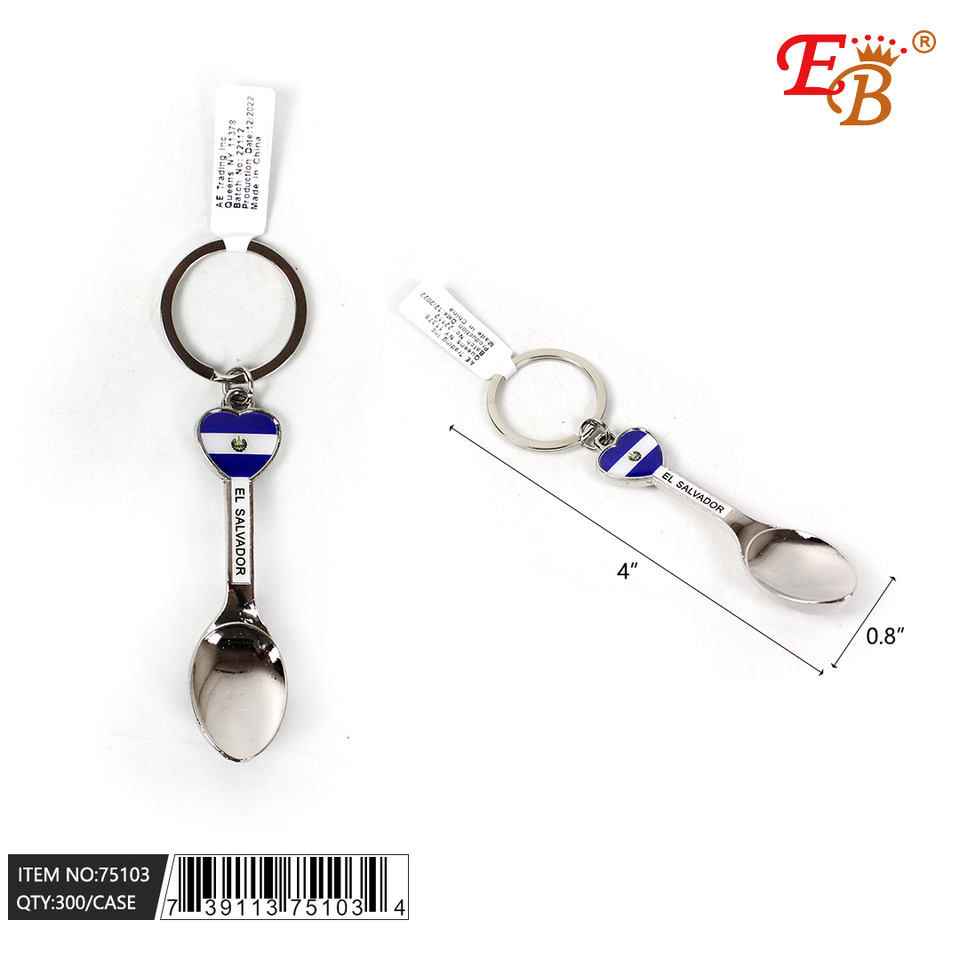 4\" EL SALVADOR SPOON KEYCHAIN 300PCS 25DZ/CS Premium Crystal Key Chains