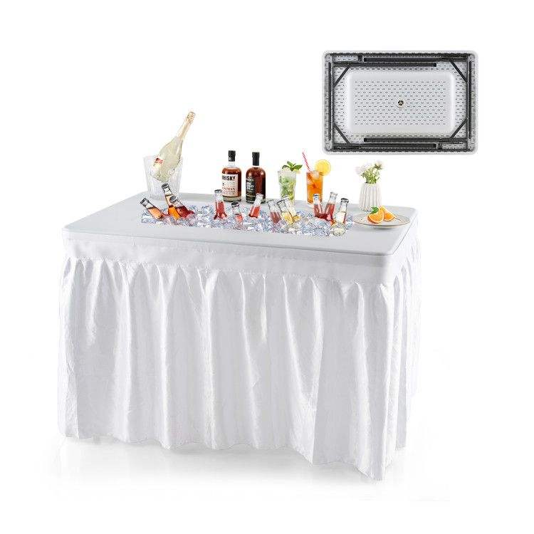 Tavolo Pieghevole da 4 Piedi con Grembialatura per Campeggio, Picnic, Matrimoni, Feste, Stoviglie e Decorazioni