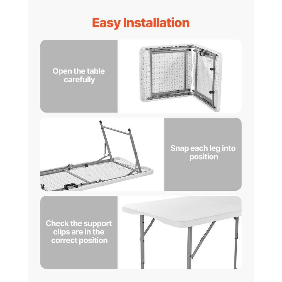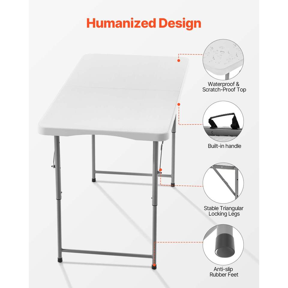 Tavolo Pieghevole Resistente da 120 cm, Portatile, Richiudibile a Metà, per Interni ed Esterni, Rettangolare in Plastica con Altezza Regolabile