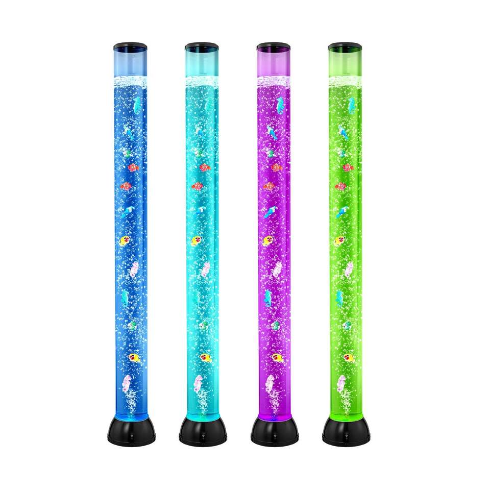 Tubo Sensoriale a Bolle da 4 Piedi con 10 Pesci Galleggianti, 16 Effetti di Colore, Telecomando, Luce per Acquario, Lampada a Bolle Sensoriale