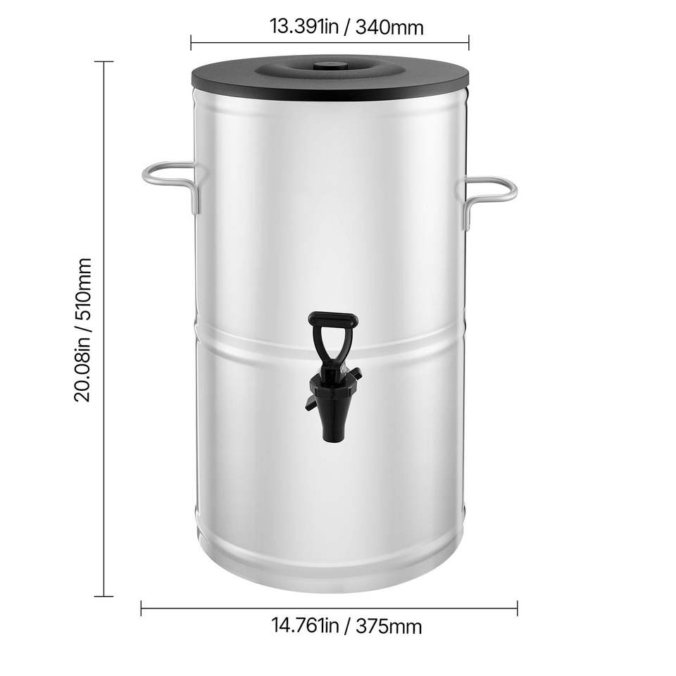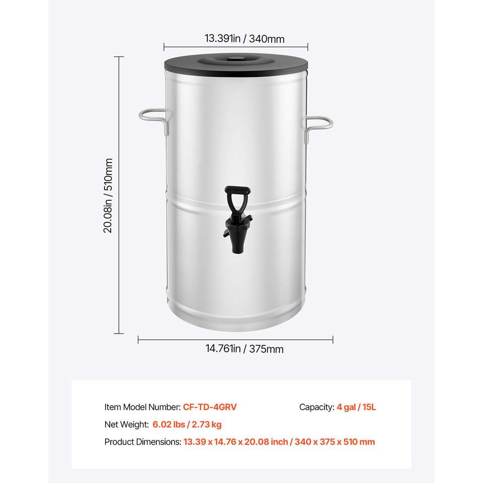Dispenser per Bevande in Acciaio Inox 304 da 15L/4 Galloni, Erogatore per Bevande Calde e Fredde con Rubinetto e Maniglia per Tè, Caffè e Altre Bevande