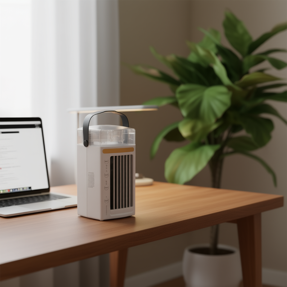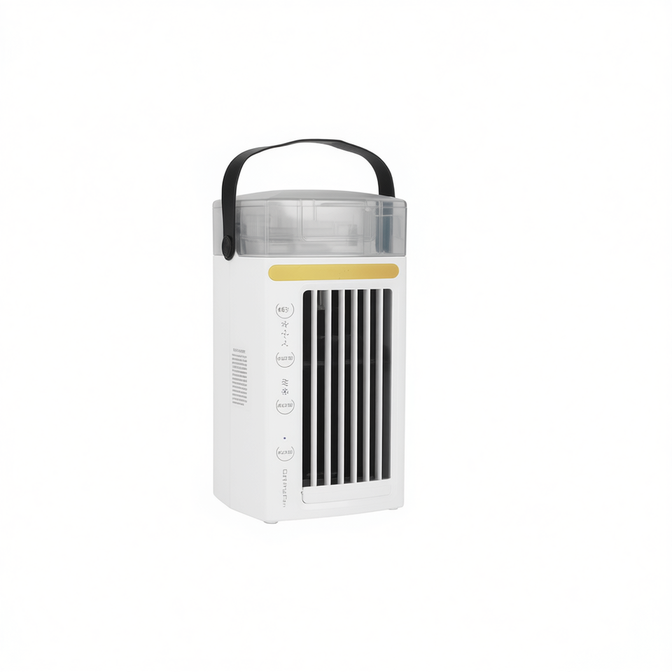 Raffrescatore d'Aria Portatile 60W DC 3 Velocità con Luce Notturna, Controllo Meccanico, per Casa, Ufficio, Campeggio, Autoportante, in Plastica Bianca